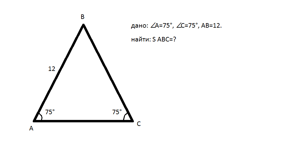 Перед вами страница с вопросом Дано : ∠ А = 75°, ∠ С = 75°, АВ = 12?, который относится к категории Геометрия. Уровень сложности соответствует учебной программе для учащихся 5 - 9 классов. Здесь вы найдете не только правильный ответ, но и сможете ознакомиться с вариантами пользователей, а также обсудить тему и выбрать подходящую версию. Если среди найденных ответов не окажется варианта, полностью раскрывающего тему, воспользуйтесь «умным поиском», который откроет все похожие ответы, или создайте собственный вопрос, нажав кнопку в верхней части страницы.