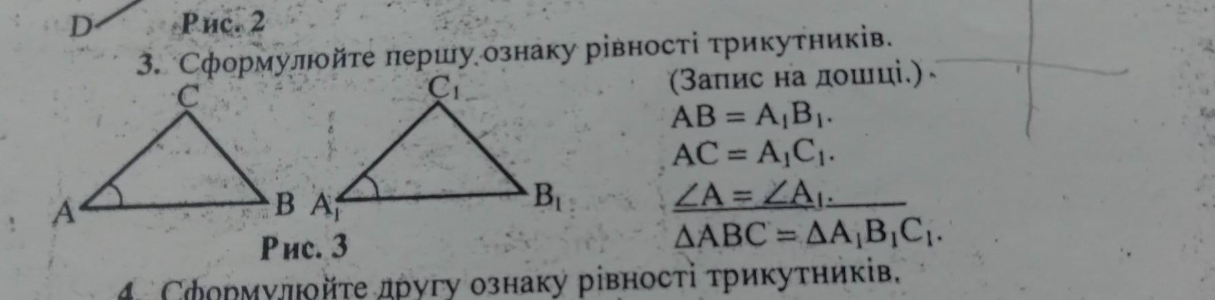 3. Якщо три сторони одного трикутника відповідно дорівнюютьтрьом сторонам ішного трикутника то такі трикутники рівні.