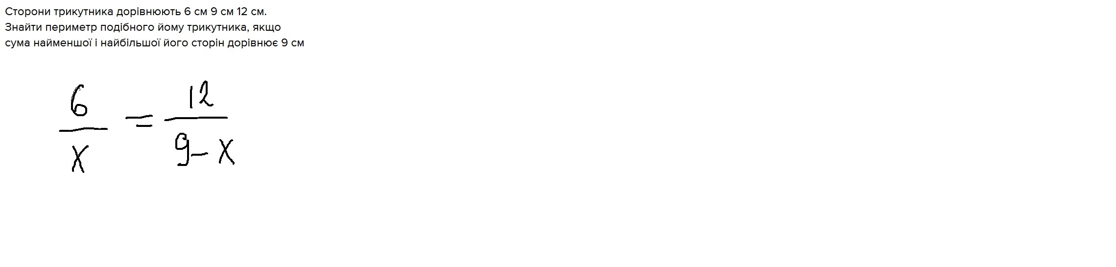 Знайти периметр подібного йому трикутника, якщо сума найменшої і найбільшої його сторін дорівнює 9 см.
