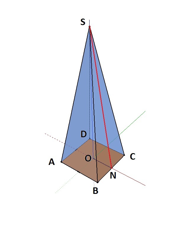 I - апофема ; В основании пирамиды квадрат, по условию со стороной равной 2 см.