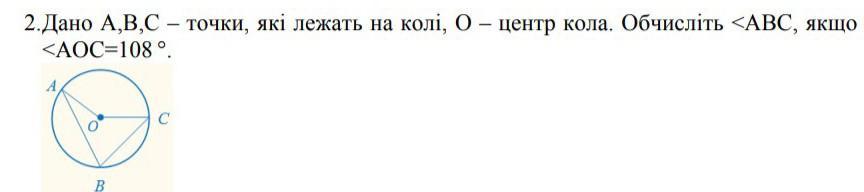 Пояснення : Вписаний кут дорівнює половині центрального кута, що спирається на ту ж дугу, і дорівнює половині дуги, на яку він спирається, або доповнює половину центрального кута до 180°.