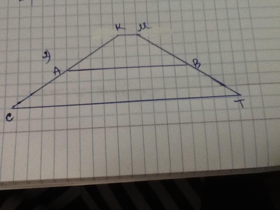 2. Дано : СКМТ - трапеція, АВ - середня лінія,   ; СК = МТ = АВ ;   ; Р = 24 см.