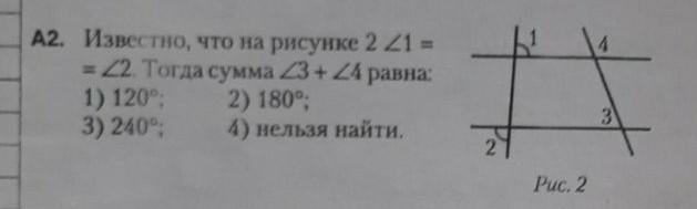 известна что на рисунке 2 угол 1 = углу 2 тогда сумма угла 3 + угл 4 равна(выберите 1 вариант).