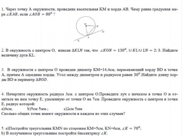 Радиус ОА перпендикуляр к касательной КМ, тогда