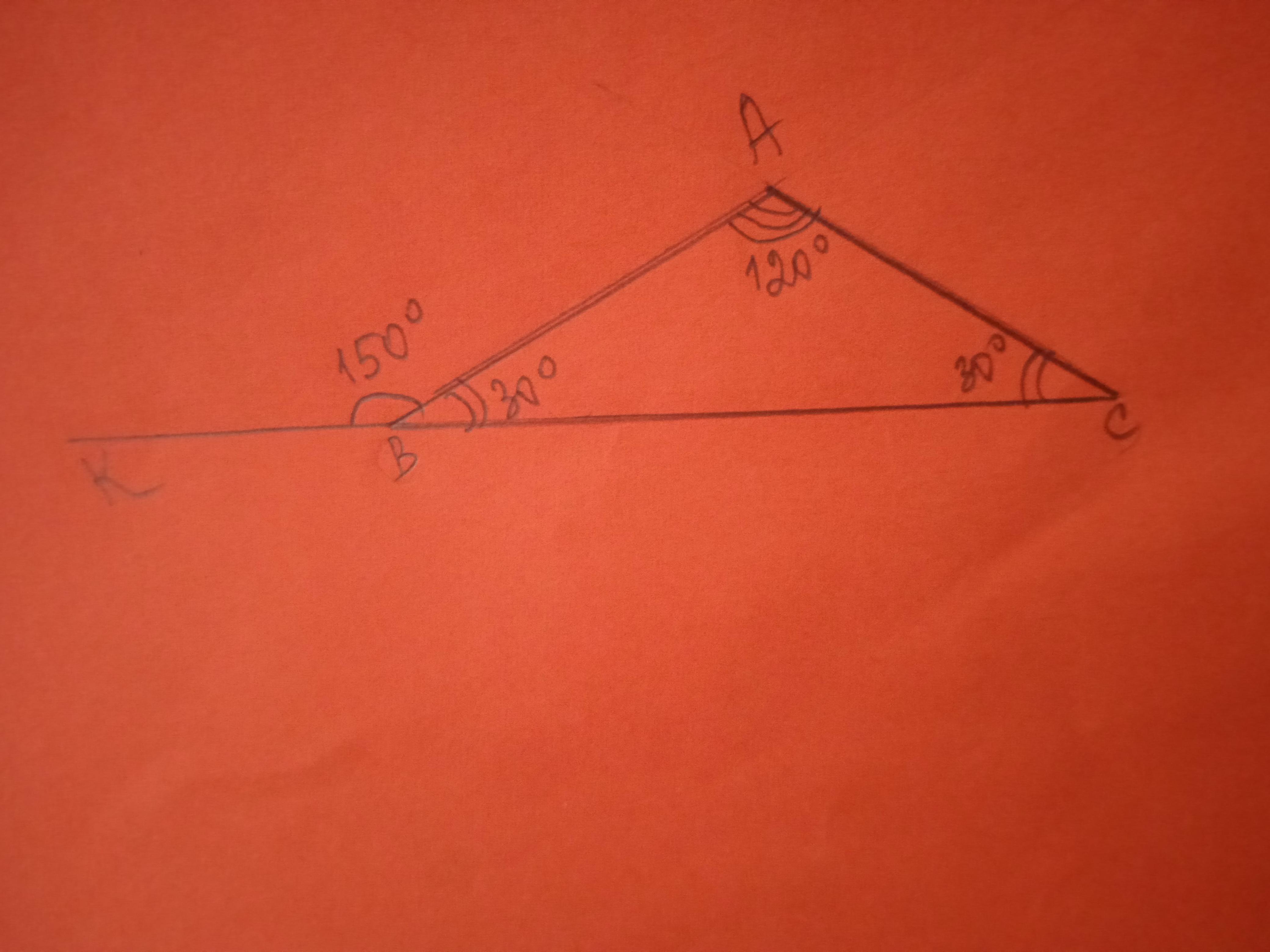 Дано : ΔАВС,   ; ∠КВС = 150°,   ; ∠А = 4∠С.